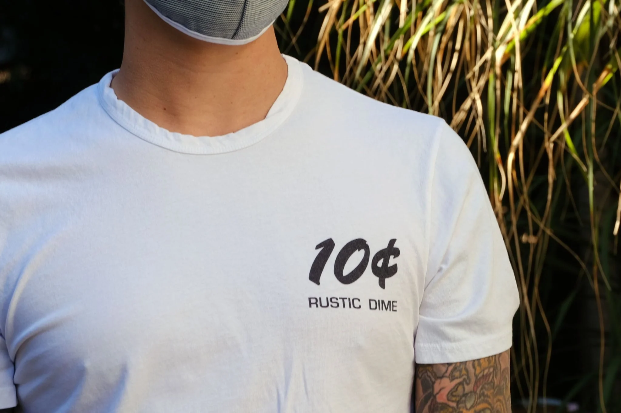 All wardrobes need a basic white tee with a little tied dye flare: This limited edition screen printed Dime Tee is a staple meant for everyday wear, 100% cotton for 100% breathability, style and comfort